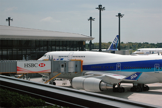 右の方にはルフトハンザ、オーストリアなど今までなかなか間近では見ることのできなった機体が並んでいます。ガラス越しとはいえ、邪魔な金網がありません。ビデオを撮るにはなかなかいい場所が増えました。