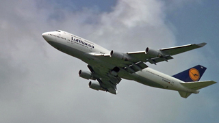青空に浮かぶ白い雲をバックに、大型機が次々と目の前を離陸していきます。うーん、美しいなあ。実に感動的な絵が撮れるので、真夏の炎天下にもかかわらず3時間ぶっ通しで撮影を続けてしまいました。さすがに12:00頃になると、暑さでクラクラしてきたので、一旦食事休憩に。