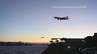 久しぶりに当コーナーを更新します。今回は、羽田空港近くの城南島海浜公園で撮影した、夜の着陸シーンです。この日(2007/08/12)は夏場にしてはとても視程がよく、日没直後の空の色が感動的でした。日没前後は、刻一刻と空の色が変化するので、1カット1カットがとても大切で緊張を強いられます。この日は結構風が強く、望遠時にブラさずに撮るのが難しかったのですが、撮影したカットの中から、出来のいいものを選んでみましたので、ぜひご覧ください。