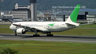 JALの垂直尾翼の赤がグリーンになったエコジェットは、見た目とてもインパクトのある機体です。私のホームグラウンドの羽田ではなかなか撮影できなかったのですが、伊丹遠征で撮影することができるとは・・。しかも伊丹は羽田よりも撮影環境がいいので、とてもラッキーでした。
