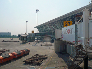 この写真は、そのリニアモーターカーの車窓から写した浦東空港です。