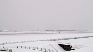 ところが、10:30頃にはどんどん雪が強くなり、離着陸する飛行機が見えなくなってきました。雪も適度に降ってくれるのでないと、視界が悪くなりすぎて撮影ができなくなったり、挙句の果てには欠航してしまったりするので、なかなか難しいところです。