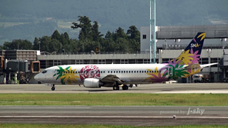 SNA(スカイネットアジア航空)のB737-400の出発シーンです。熊本空港で撮影しました。熊本空港では、天気がよいと、雄大な阿蘇の外輪山をバックに飛行機の離着陸機シーンを撮影することができます。