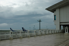 那覇空港の送迎デッキは、高いフェンスもなく、とても撮影しやすい環境です。晴れてさえいれば、青い海をバックに美しい絵が撮れるはずだったのですが、今日の天気ではどうしようもありません。