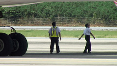 ジェット旅客機を間近で見られることに興奮しつつ、普段立ち入ることはできない場所にやや緊張しながら、三脚にビデオカメラをセッティング。そうこうするうちに、B777の周囲では、訓練前のパイロットのみなさんによる事前チェックが始まりました。
