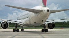 B777の方は、パイロットのみなさんが乗り込み、エンジンテストが終わると、タキシングを開始。風は南風なので、B777は離陸のためにランウェイ17エンドに向かいます。