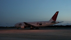 私は、宮古空港での撮影は初めてです。事前に多少は調べたものの、おすすめのポイントの場所がよく分かりません。宮古空港の外周を車で二、三回往復したのですが、結局これはというポイントが見つからず、そうこうするうちに日が暮れてきました。夕焼けがそれなりにきれいになってきたので、無難なところで空港の送迎デッキに向かうことにしました。
