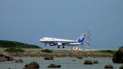 これからは夏場なので、やっぱり青い海だろう。青い海とジェット旅客機・・。この組み合わせで国内で一番有名なのは、あの「下地島空港」ですよね。沖縄の離島にあるジェットパイロット訓練用の空港で、3,000mm滑走路を持ち、周囲はエメラルドグリーンの海。飛行機ファンなら一度は訪れてみたい空港の一つ。最近では、天体危機管理機構の下地島超高々度迎撃基地も設置されています(嘘)。