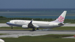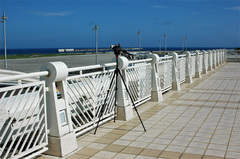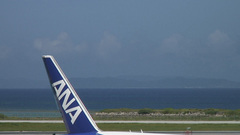 9:00頃から撮影を開始。遠征初日とは打って変わって、晴れたときの送迎デッキからの景色はとても美しい。滑走路の向こうには青い海、さらにその先にはうっすらと慶良間諸島も見えます。