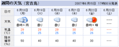 沖縄の梅雨明けは、通年だと6/23頃とのことですが、下地島に近い宮古島の過去の天気を調べてみると、だいたい6/18頃には晴れマークに変わっているようです。ちょっと危険な感じもしますが、今回は6/18~6/23を撮影期間に充てることにします。この日程だと、予定ではJALのB777、B767、ANAのA320の訓練が行われるはずです。