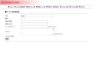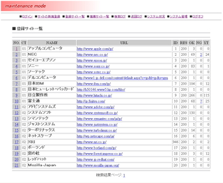 登録が終わったら、「システム管理」で「登録サイトのバックアップ」をクリックして、バックアップを取っておきましょう。こうすると、admin ディレクトリの下に url_data.rb というファイル名で、登録したサイトのリストが保存されます。データベースが壊れたときに、「データベースの削除」「データベースの作成」「テーブルの作成」を実行した後、「登録サイトの復元」を行うと、データベースを初期状態に戻すことができます。
